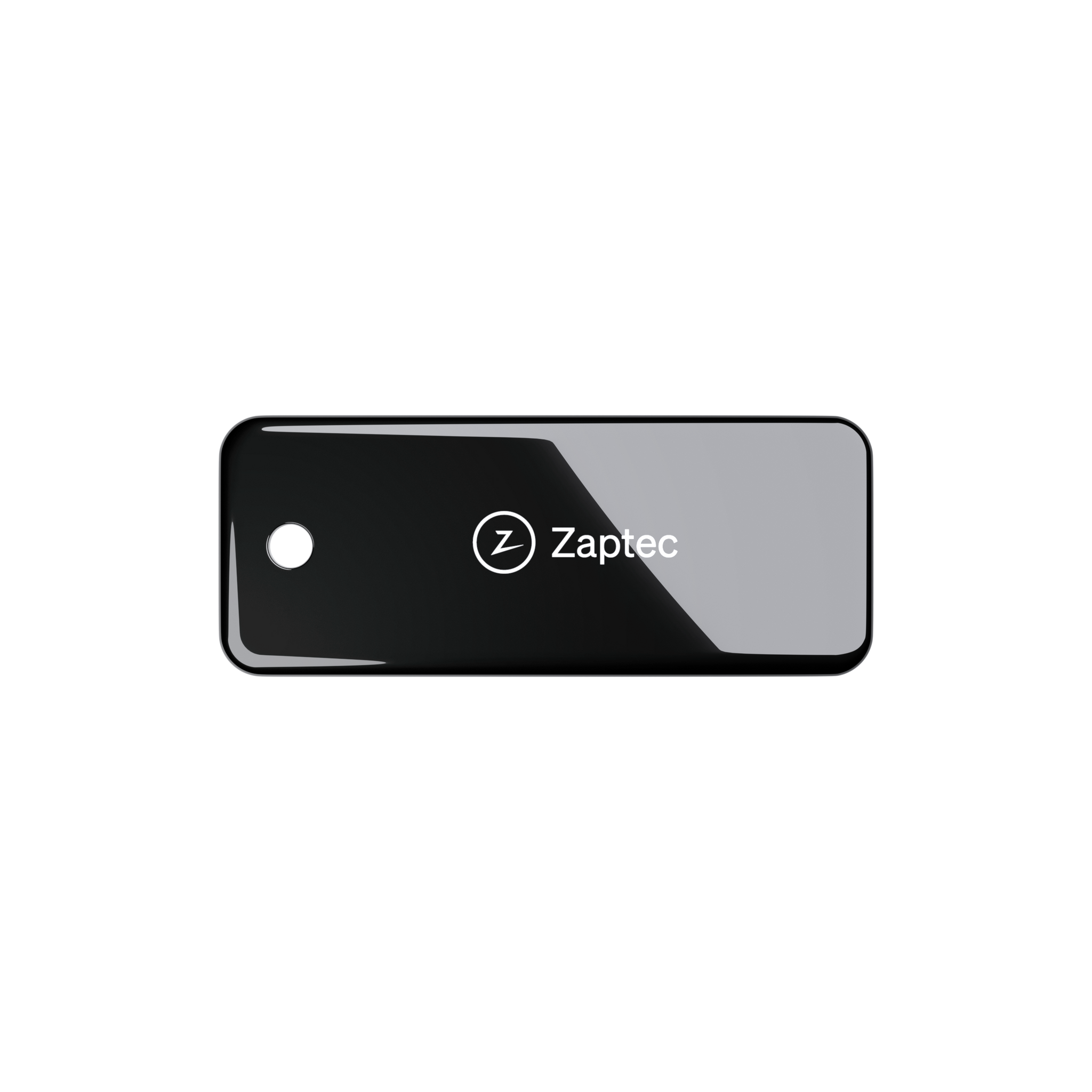 Sort ladebrikke (RFID) med Zaptec-logo. Brikken er av Mifare-standard og fungerer med alle ladestasjoner for elbil som støtter Mifare, inkludert Zaptec ladestasjoner.